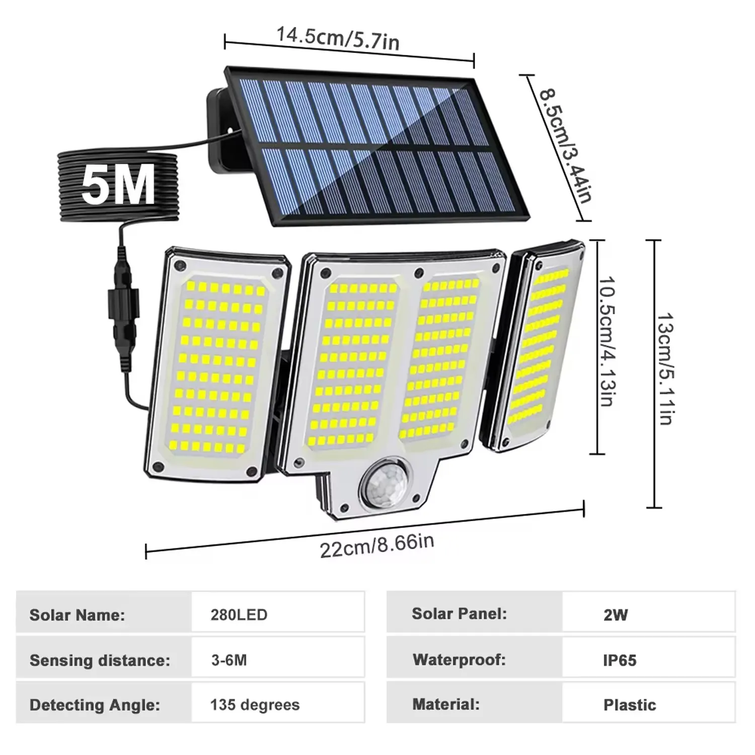 5M Wiring and Durable Design: Crafted with a 5-meter wire and a weather-resistant IP65 rating, this outdoor light is suitable for both indoor and outdoor applications, including gardens, garages, and houses, providing reliable and long-lasting lighting in various environments.