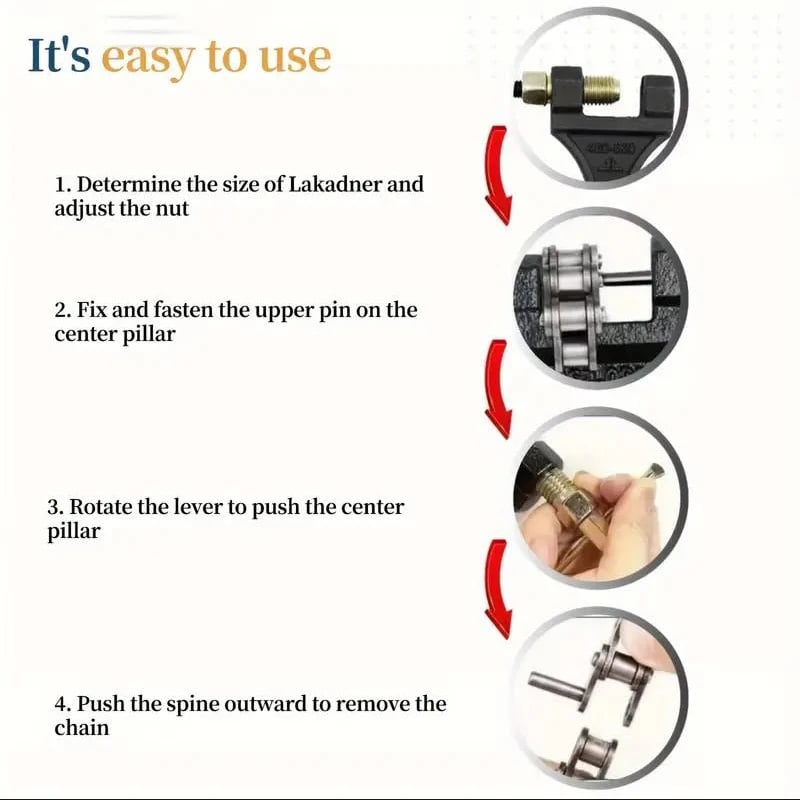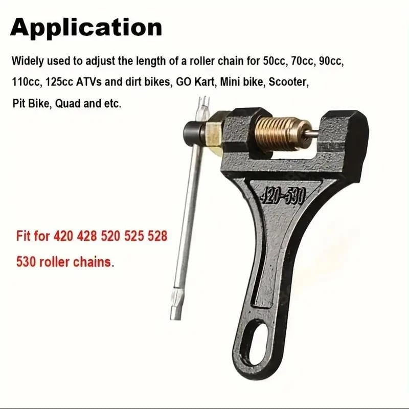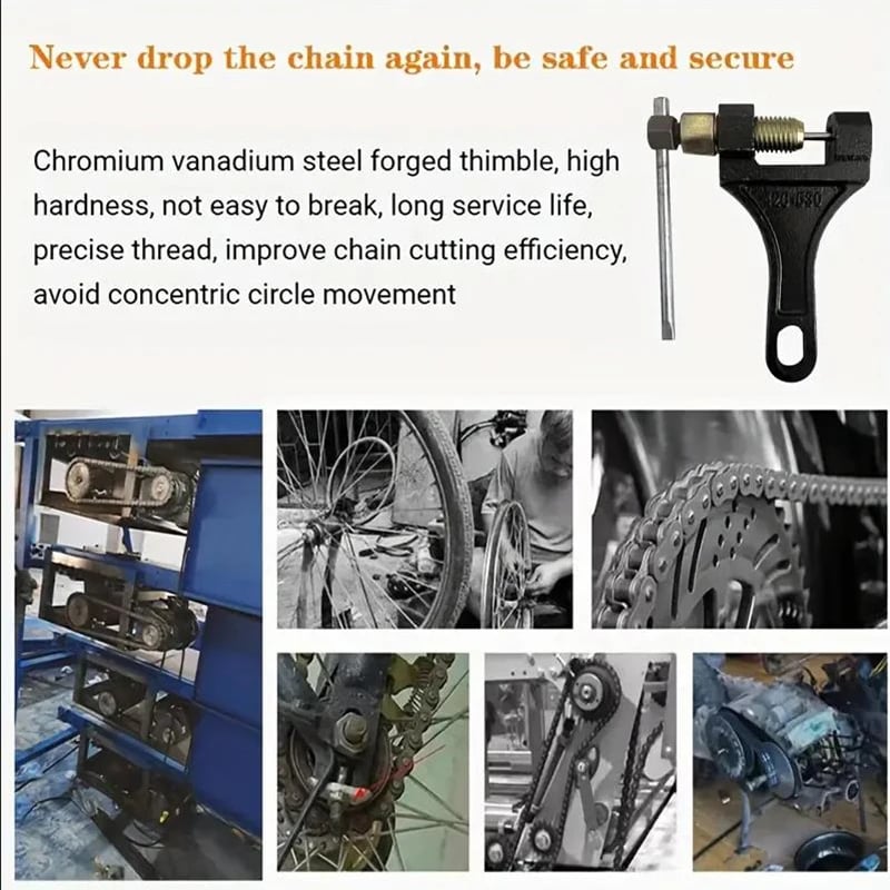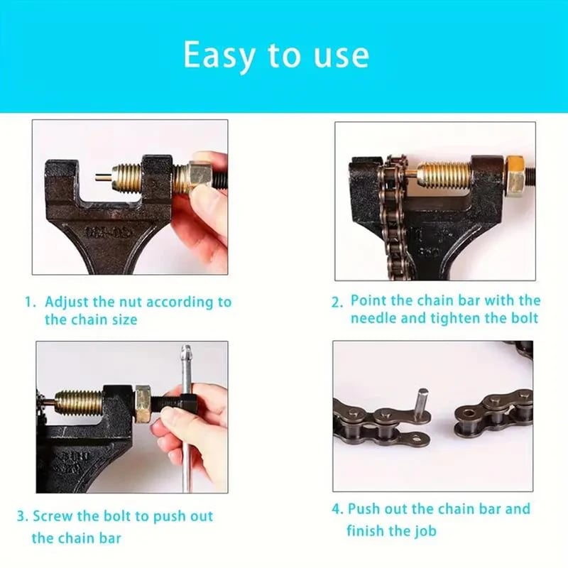 Designed to easily disassemble and cut motorcycle chains, allowing for quick and efficient repairs.