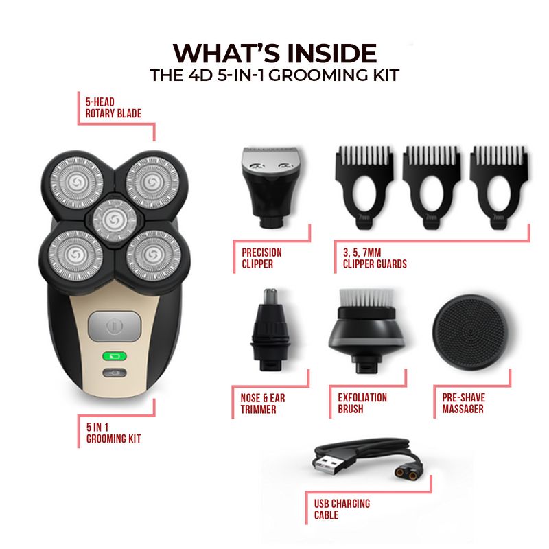 Unlike Standard Razors, Our Unique Blades Will Not Result In Razor Bumps Or Cuts. It Uses A High-Performance Five-Head Rotary Blade That Combines Flex And Precision Technology And Comfortably Follows The Contours Of Your Head, Face, And Body—Allowing For Irritation And Stubble-Free Shaves.