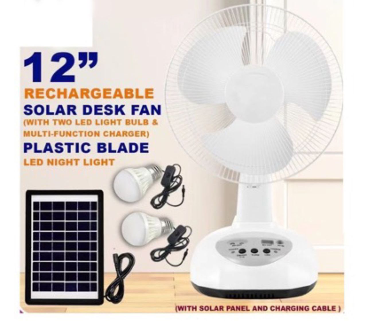 3 in1 RECHARGEABLE SOLAR TABLE FAN ☀️💨